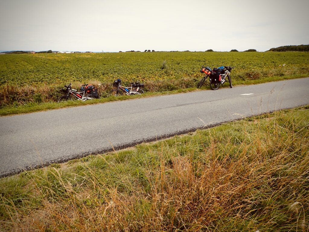Aujourd’hui, on s’est réveillé à l’heure sympathique de 07:00 (enfin pour Liv c’était plutôt 08:00). On a préparé nos affaires et plié les tentes en un temps record de deux heures, avant de se rendre compte que mon pneu avant avait crevé ce qui nous a retardé d’encore 15 minutes. On est donc parti vers 9:20 le ventre vide pour faire un trajet de 30 minutes durant lequel on a croisé la route d’un sympathique fermier qui commençait une très mauvaise journée vu que le bout avant de son tracteur venait de tomber, des cycliste qui allait dans le sens inverse, et on a suivi une route à côté des voitures qui allait à toute allure. Le Cap Griz-Nez était a notre droite a une distance non négligeable. Malheureusement nos yeux ne se délectèrent pas de son magnifique paysage, car il était trop éloigné de notre chemin. A la fin de ce périlleux trajet, un café/boulangerie nous attendait à Wissant. Au café, on a mangé une formule sucrée qui était composée de un pain au chocolat/croissant, une boisson chaude à choix, une baguette de pain avec différentes confitures. Et bien sure, nos amies les guêpes nous on fait un petit coucou.