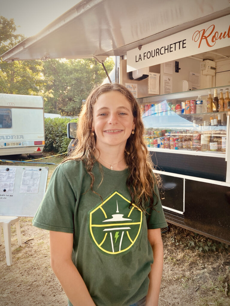 Nous avions finalement atteint le centre-ville, quand nous nous rendîmes compte du problème technique de la roue de Papa. Nous décidâmes de changer d’Intermarché et de nous diriger vers le Carrefour de la zone industrielle, où se trouvent le Décathlon et l’Intersport. Une fois arrivés là-bas, nous avons acheté tout ce dont nous avions besoin, mais n’avons pas trouvé l’exacte petite pièce dont Papa avait besoin. Puis, nous partîmes, Anna et moi, acheter de quoi manger pour le dîner au Carrefour. Anna attendit dehors pour surveiller les vélos pendant que je partis chercher notre pitance. J’y passai un petit bout de temps, qui sembla durer une heure pour Anna, et la pluie se mit à tomber quand je finissais mes achats.