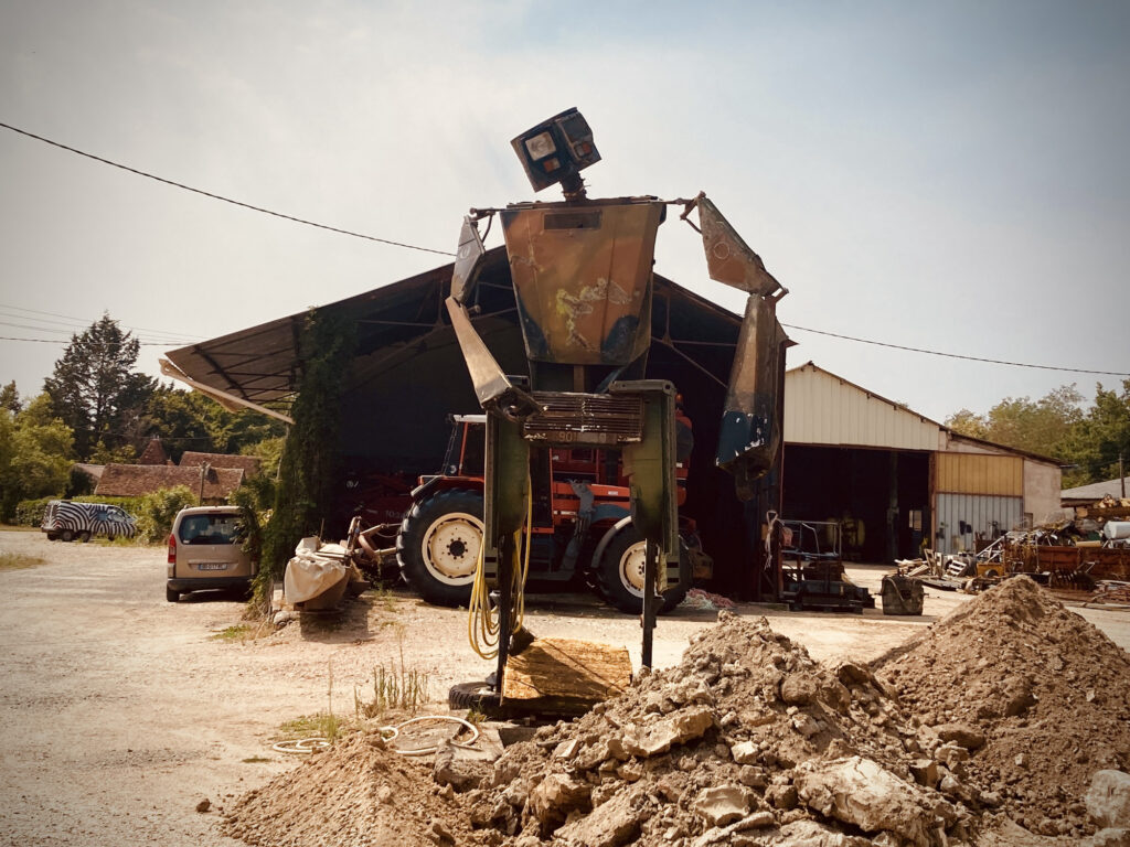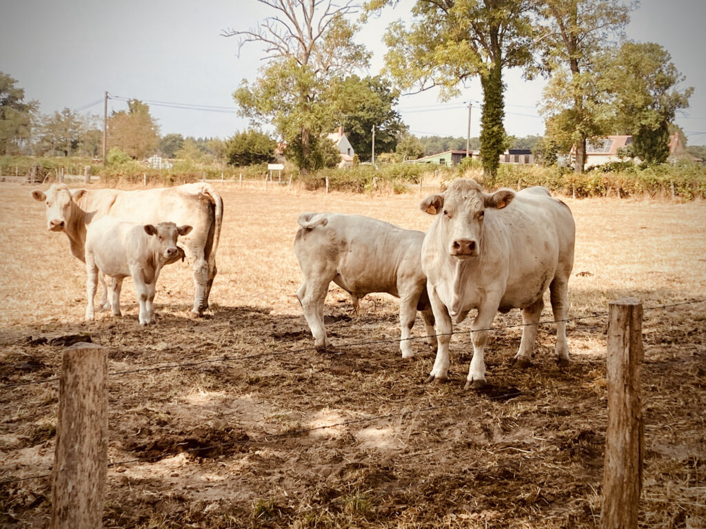 Après un petit déjeuner plus qu’improbable, nous sommes partis pour une ville à 50 km de là, appelée Moulins. Sur le chemin, nous avons vu plein de vaches, j’ai appris à siffler avec un chapeau de gland, et Anna et Nils ont eu un petit accident où Anna a été projetée de son vélo. Nous avons vu une belle statue de robot, et les vaches et brebis dans les champs étaient couchées à l’ombre, car elles avaient vraiment trop chaud. Dans la continuité (des vaches), nous étions tous surpris de l’effet de l’immense chaleur, mais surtout sécheresse, sur la nature. Outre les réactions des animaux, l’herbe était dorée, les tournesols ne regardaient plus le soleil et étaient cramés, les lits des petites rivières étaient vides, les champs étaient tous pareils, cramés couleur or.
