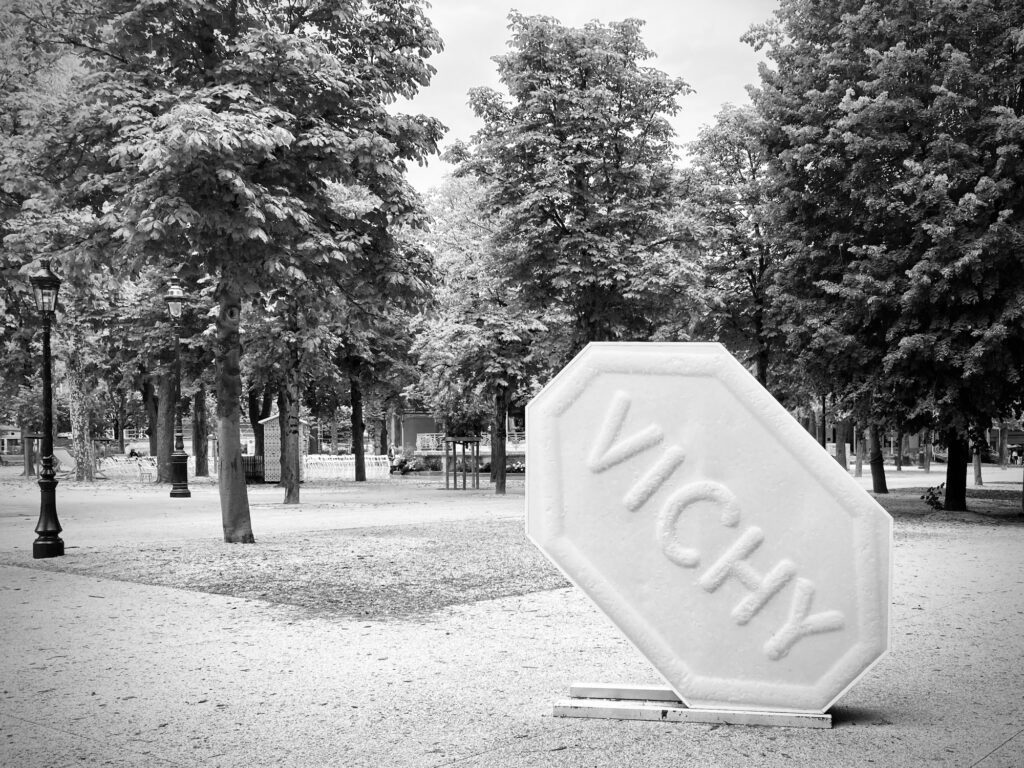 Assumant qu’il ne nous aiderait pas plus, nous sonnâmes — après une sélection très personnelle — à une maison jugée accueillante. Et nous jugeâmes bien : l’homme qui en sortit était très accueillant et chaleureux, avec sa gentille maman qui attendait sur le pas de la porte. Il répondit très clairement à notre requête de renseignement, et nous pûmes alors continuer notre route, passant par Chatpoulin. Nous allions donc, avec Anna, au gré des montées et des descentes, suivant minutieusement les indications et roulant bien sur le bas-côté (l’homme nous expliqua que le mieux qu’il pouvait nous proposer était de rejoindre la départementale au moyen des ronds-points). Nous étions en route pour Vichy, mais celle-ci n’était pas dans nos plans de visite. C’est au camping, la veille, que la gérante nous expliqua que la ville valait que coup, et que nous décidions alors d’y faire un crochet.