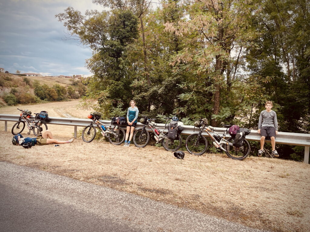 Ensuite, nous sommes partis du village et nous avons pédalé une trentaine de kilomètres à toute allure, en ne nous arrêtant que deux pauvres fois : une fois au bord de la route, car nous n’en pouvions plus, et une seconde fois à côté d’un champ de maïs pour piquer quatre épis que nous comptions manger le soir même.