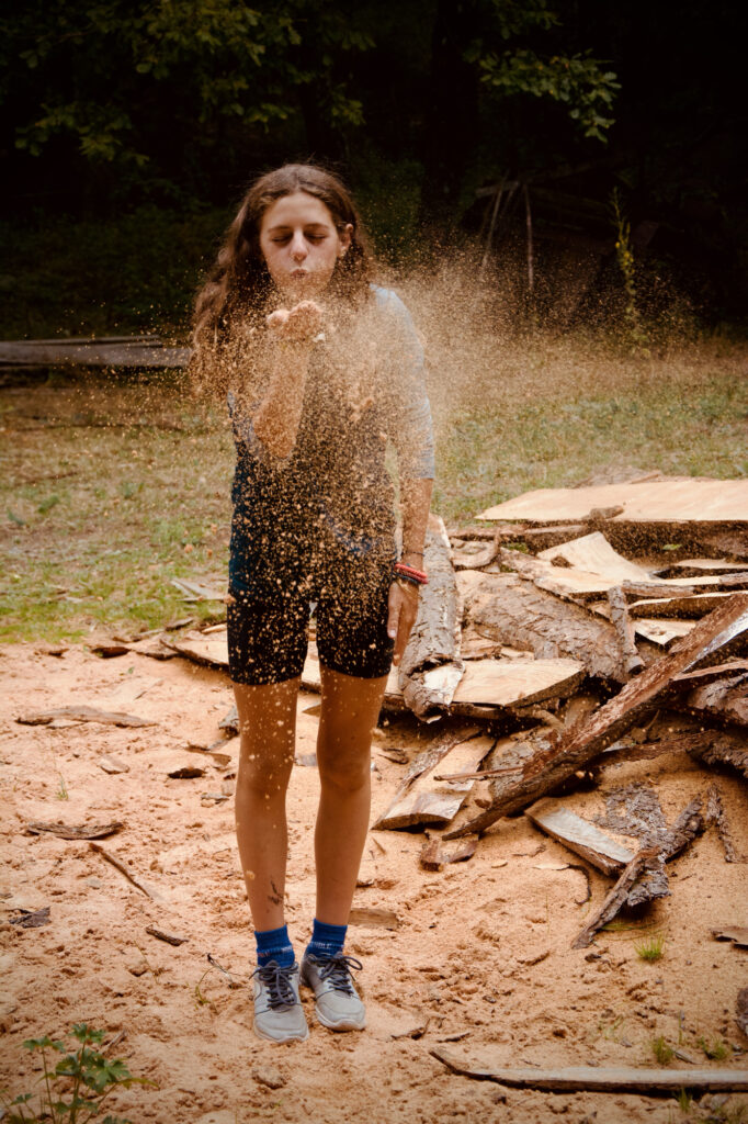 Après avoir monté les tentes, on a choisi les photos pour le blog. Puis on s’est régalés avec nos victuailles du soir : pain, Philadelphia, noix de cajou, rosette, olives, et bien sûr, des guimauves au chocolat pour la touche finale gourmande.