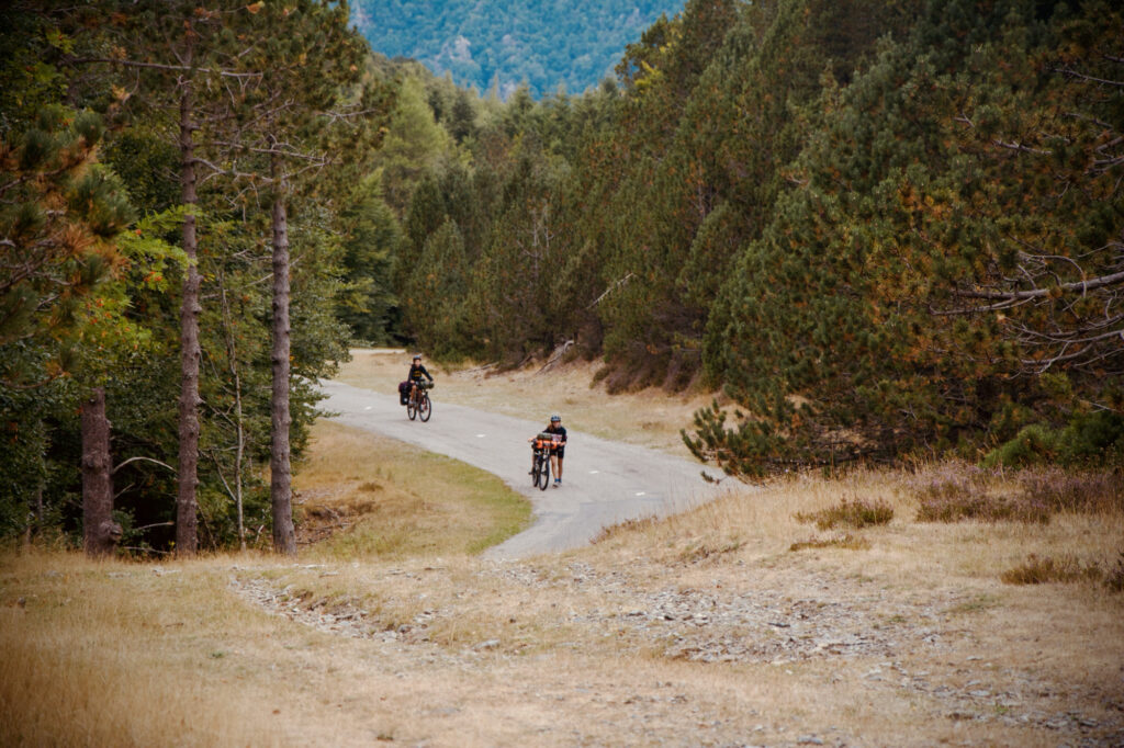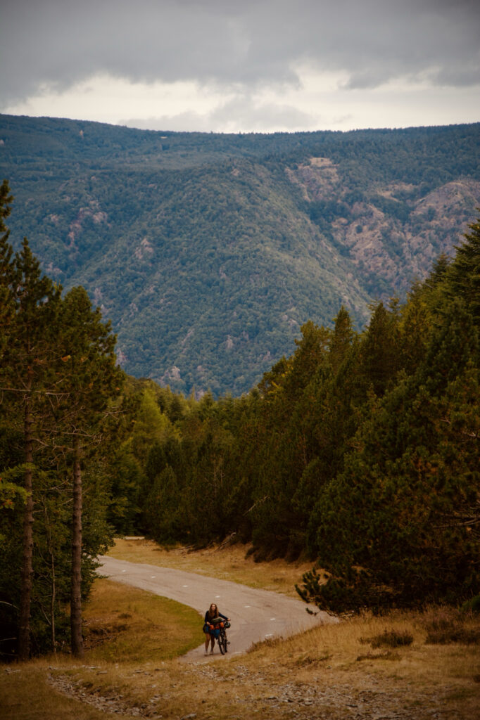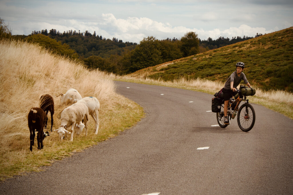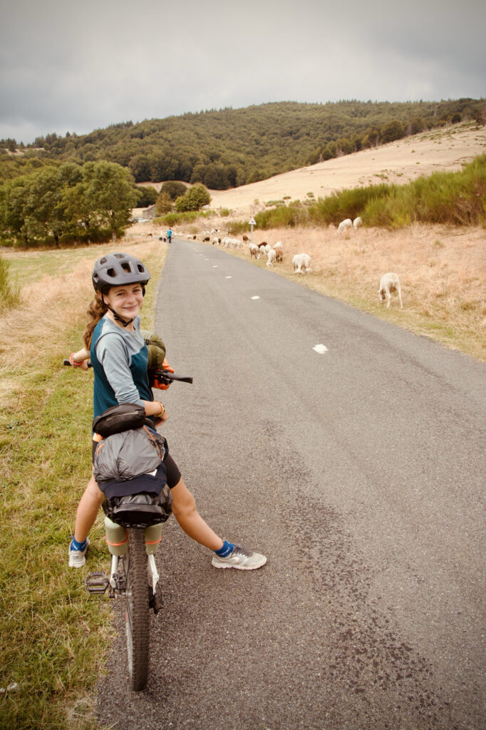 À l’arrêt suivant, nous avions déjà fait une belle distance, compte tenu du temps passé à monter. J’étais tout devant depuis des kilomètres, je roulais facilement. Je me suis arrêté à un croisement, où un panneau indiquait : “MONT AIGOUAL > 8 KM”. Sur ma droite, un petit hameau de maisons, trois ou quatre, cinq au plus. Une dame âgée, mais vive, déballait ses courses, et je lui souhaitai une bonne journée. Un quart d’heure plus tard, Papa me rejoignait, suivi d’Anna dix minutes après, puis de Nils.
