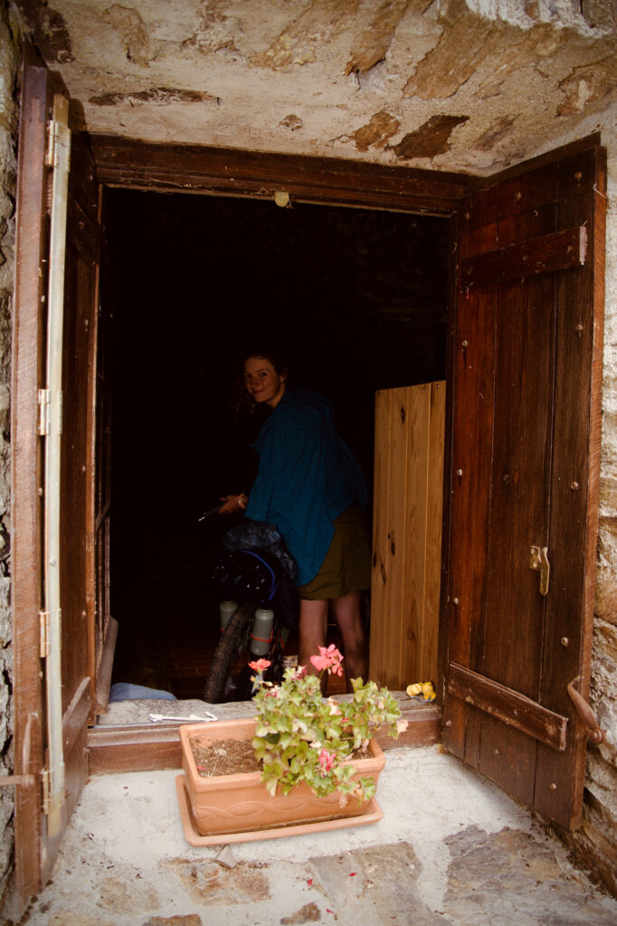 Je voulus essayer de faire une petite descente en hors-piste pour tester la légèreté de mon vélo sans les bagages, mais mes sangles se prirent dans mes roues. Après cinq minutes à les démêler, nous chargeâmes nos vélos, nous dîmes au revoir à Rebecca et la remerciâmes de son chaleureux accueil, et partîmes pour cette dernière journée en tant que cyclistes professionnels.